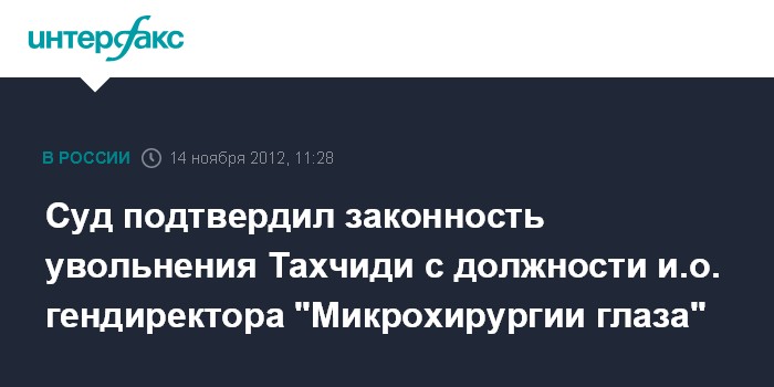 Суд подтвердил законность увольнения Тахчиди с должности и.о. гендиректора "Микрохирургии глаза"