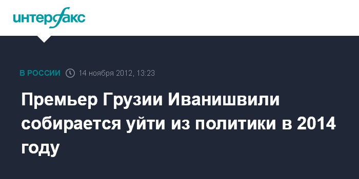 "Я собираюсь уйти из политики весной 2014 года после местных выборов, но я не уйду побежденным. Я оставлю после себя очень хорошее правительство, а сам уйду в гражданский сектор буду контролировать это правительство", - заявил Иванишвили в Брюсселе на встрече с грузинскими эмигрантами.