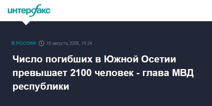 Число погибших в Южной Осетии превышает 2100 человек - глава МВД республики