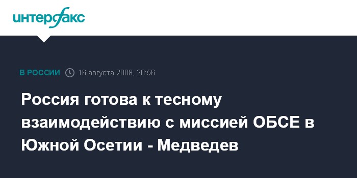 Россия готова к тесному взаимодействию с миссией ОБСЕ в Южной Осетии - Медведев