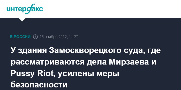 Москва. 15 ноября. INTERFAX.RU - Столичная полиция усилила меры безопасности у здания Замоскворецкого суда Москвы, где в четверг будут рассмотрены уголовное дело в отношении самбиста Расула Мирзаева и заявление прокуратуры о признании экстремистским ролика акции панк-группы Pussy Riot в храме Христа Спасителя.