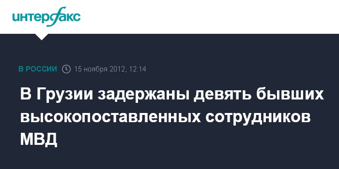 Тбилиси. 15 ноября. INTERFAX.RU - Министр юстиции Грузии Тея Цулукиани сообщила журналистам о задержании в ночь на четверг девяти бывших высокопоставленных сотрудников МВД, среди них бывшего начальника Конституционного департамента МВД Левана Кардава и бывшего начальника этого же департамента в Тбилиси Георгия Кавелашвили.