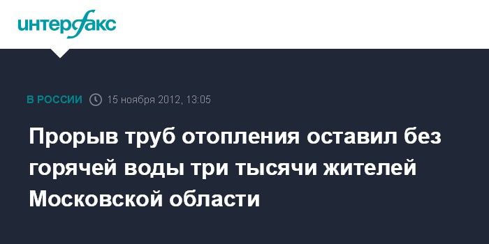 Москва. 15 ноября. INTERFAX.RU - Из-за прорыва труб отопления в Наро-Фоминском районе Подмосковья без горячей воды остались около 3 тыс. человек, сообщили "Интерфаксу" в пресс-службе сообщили "Интерфаксу" в пресс-службе ГУ МЧС России по Московской области.