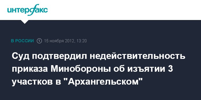 Суд подтвердил недействительность приказа Минобороны об изъятии 3 участков в "Архангельском"