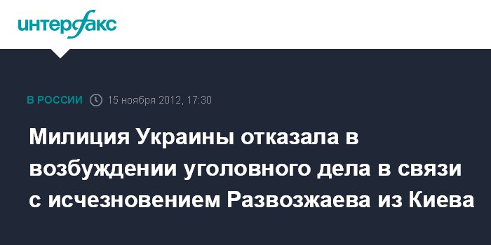 Милиция Украины отказала в возбуждении уголовного дела в связи с исчезновением Развозжаева из Киева