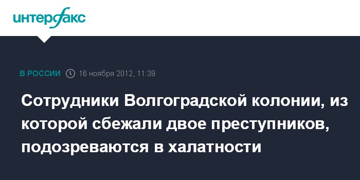Москва. 16 ноября. INTERFAX.RU - Против сотрудников волгоградской колонии, из которой сбежали особо опасные заключенные, возбуждено уголовное дело о халатности, сообщает СКР.