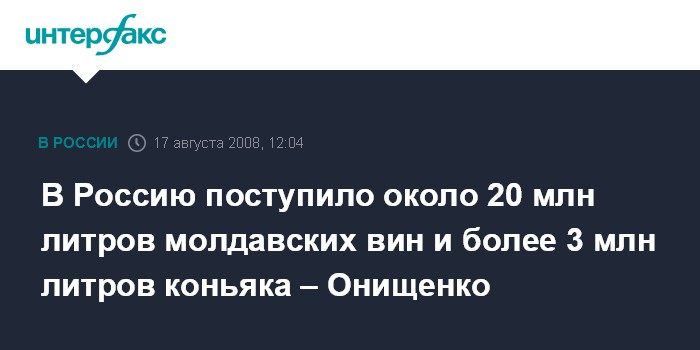 Москва. 17 августа. INTERFAX.RU - Глава Роспотребнадзора Геннадий Онищенко заявляет о расширении доступа на российский рынок вин из Молдавии и Приднестровья, однако отмечает, что к виноделам имеются некоторые претензии.