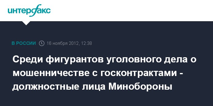 Москва. 16 ноября. INTERFAX.RU - СК РФ возбудил уголовное дело по факту мошеннических действий при выполнении госконтракта, заключенного с Минобороны РФ, сообщил "Интерфаксу" официальный представитель Следственного комитета Владимир Маркин.