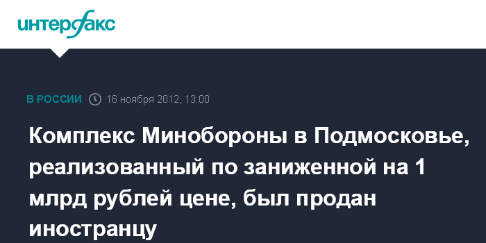 Комплекс Минобороны в Подмосковье, реализованный по заниженной на 1 млрд рублей цене, был продан иностранцу