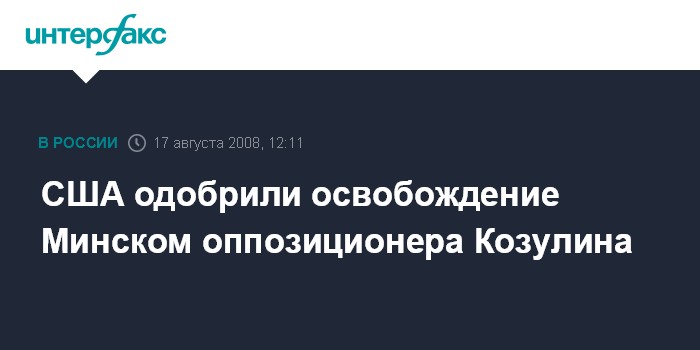 Минск. 17 августа. INTERFAX.RU - Соединенные Штаты положительно оценивают решение белорусских властей об освобождении оппозиционного деятеля Александра Козулина, заявил в интервью "Интерфаксу" временный поверенный в делах США в Белоруссии Джонатан Мур.