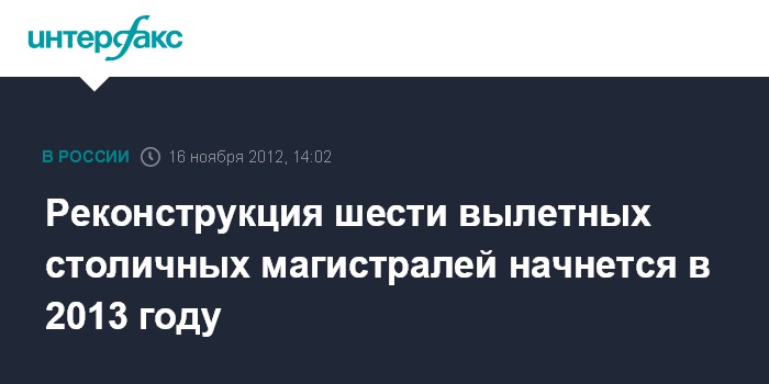 Москва. 16 ноября. INTERFAX.RU - В 2013 году начнутся работы по реконструкции шести крупных вылетных магистралей Москвы, сообщил заместитель столичного градоначальника Марат Хуснуллин на оперативном совещании правительства города в пятницу.