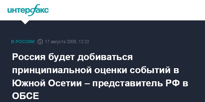 Россия будет добиваться принципиальной оценки событий в Южной Осетии – представитель РФ в ОБСЕ