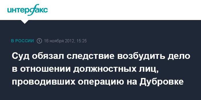 Как сообщил на своем официальном сайте адвокат потерпевших в результате теракта в театральном центре на Дубровке Игорь Трунов, из суда ему пришло вступившее в законную силу постановление, которым следователей обязывают возбудить уголовное дело в отношении должностных лиц.