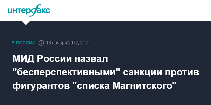 МИД России назвал "бесперспективными" санкции против фигурантов "списка Магнитского"