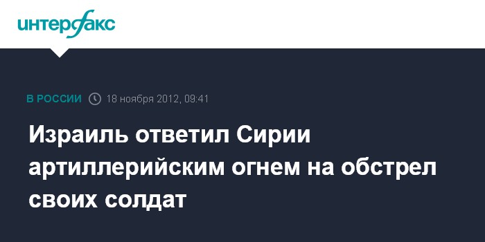 Иерусалим. 18 ноября. INTERFAX.RU - Израильские солдаты открыли в ночь в субботу артиллерийский огонь по сирийской территории в ответ на обстрел своих солдат на Голанских высотах со стороны Сирии, сообщил представитель израильских вооруженных сил. С израильской стороны потерь нет, отметил он.