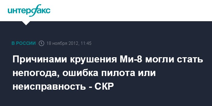 Причинами крушения Ми-8 могли стать непогода, ошибка пилота или неисправность - СКР