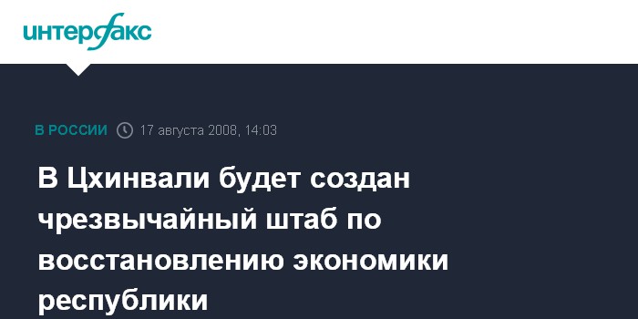 В Цхинвали будет создан чрезвычайный штаб по восстановлению экономики республики