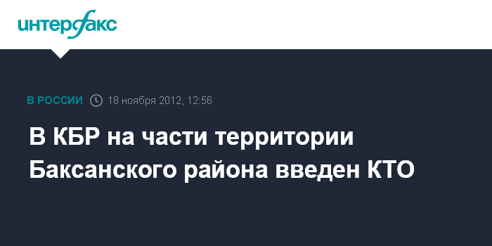 Нальчик. 18 ноября. INTERFAX.RU - На части территории Баксанского района введен режим контртеррористической операции, сообщил агентству "Интерфакс-Юг" официальный представитель Оперативного штаба в КБР.