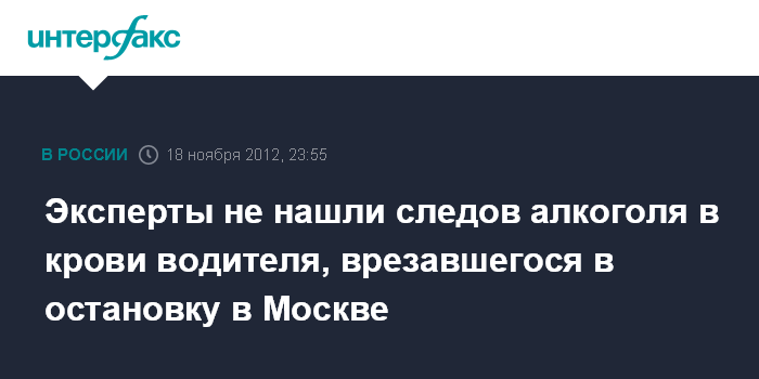 Москва. 18 ноября. ИНТЕРФАКС - Водитель, врезавшийся в остановку и ранивший пешехода на севере Москвы, был трезв, сообщили "Интерфаксу" вечером в воскресенье в пресс-службе столичного ГУ МВД.
