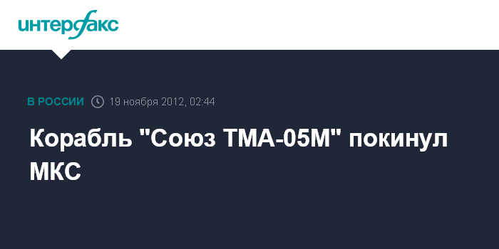 Корабль "Союз ТМА-05М" покинул МКС