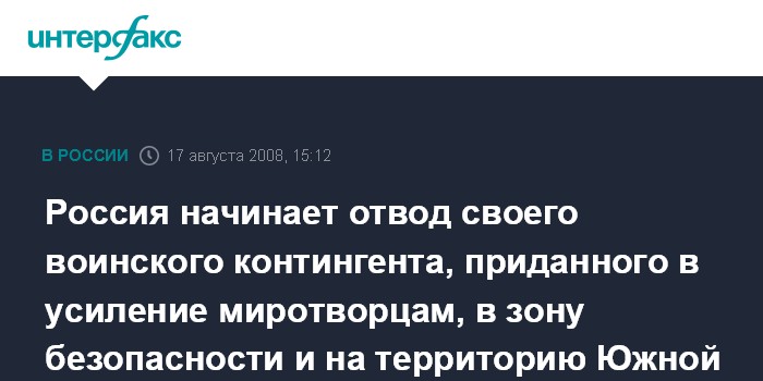 Россия начинает отвод своего воинского контингента, приданного в усиление миротворцам, в зону безопасности и на территорию Южной Осетии – Медведев