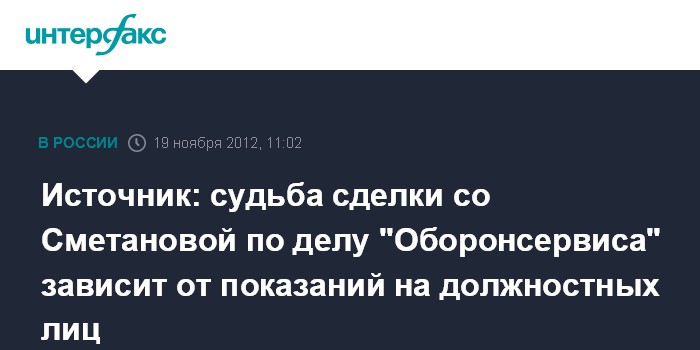 Источник: судьба сделки со Сметановой по делу "Оборонсервиса" зависит от показаний на должностных лиц