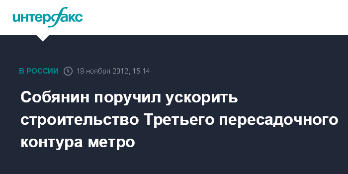 Москва. 19 ноября. INTERFAX.RU - Мэр Москвы Сергей Собянин поручил ускорить строительство северо-западного участка Третьего пересадочного контура столичного метро, который должен быть открыт в 2015 году.