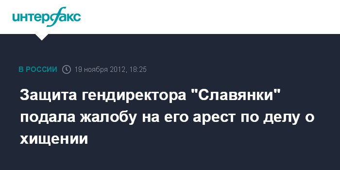 Защита гендиректора "Славянки" подала жалобу на его арест по делу о хищении