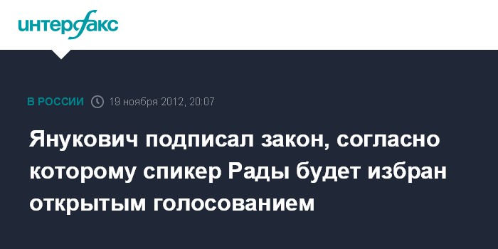 Киев. 19 ноября. INTERFAX.RU - Президент Украины Виктор Янукович подписал закон о внесении изменений в Регламент Верховной Рады Украины, сообщается на официальном сайте главы государства в понедельник.