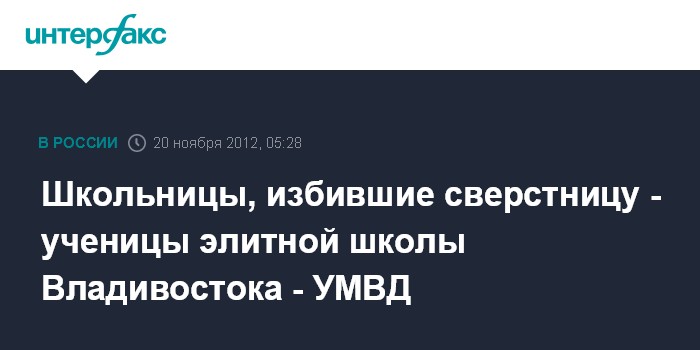 "Полицейские организовали детальную проверку инцидента. Установлены все участницы расправы - жительницы города Владивостока, ученицы одной из элитных школ краевого центра", - сообщает во вторник пресс-служба полиции Приморья.
