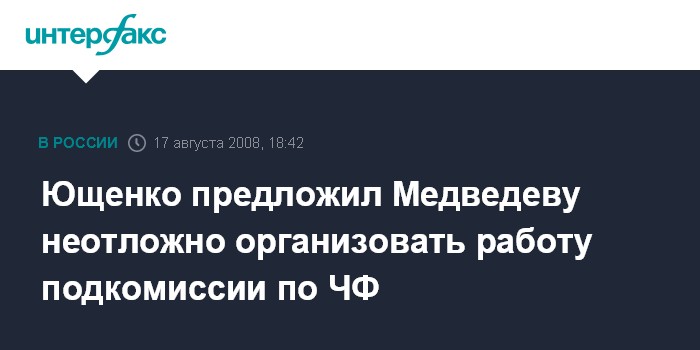 Ющенко предложил Медведеву неотложно организовать работу подкомиссии по ЧФ