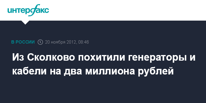 Из Сколково похитили генераторы и кабели на два миллиона рублей