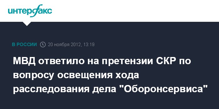 МВД ответило на претензии СКР по вопросу освещения хода расследования дела "Оборонсервиса"