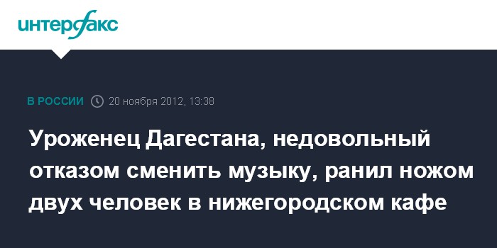 Уроженец Дагестана, недовольный отказом сменить музыку, ранил ножом двух человек в нижегородском кафе