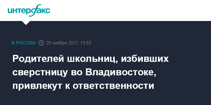 Владивосток. 20 ноября. INTERFAX.RU - Родители владивостокской школьницы, видеоролик с избиением которой появился в Интернете, обратились в полицию с заявлением об избиении дочери, сообщает пресс-служба УМВД по Приморскому краю.