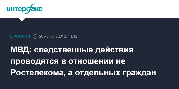 В пресс-центре подчеркнули, что "в отношении Ростелекома никакие следственные действия МВД России не проводит".