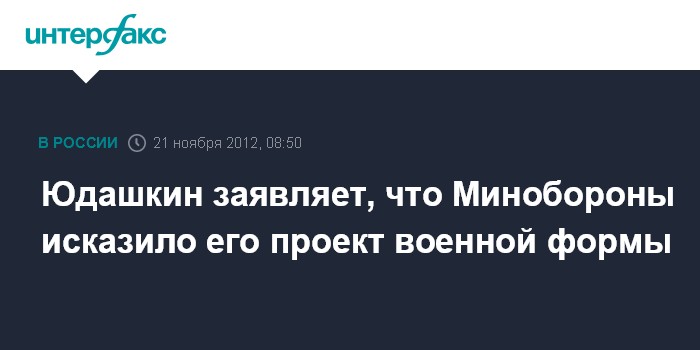 "Официально заявляю, что то, что носят в армии сейчас, не является той формой, которую я и мои сотрудники разработали в 2007 году по заказу Минобороны", - сказал В.Юдашкин в интервью, которое публикует газета "Известия" в среду.
