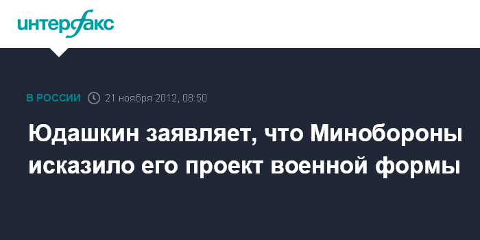 Москва. 21 ноября. INTERFAX.RU - Известный модельер Валентин Юдашкин, считающийся одним из разработчиков военной формы для российских солдат, заявил, что Минобороны исказило его идею.