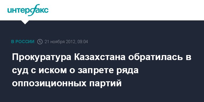 Астана. 21 ноября. INTERFAX.RU - Прокуратура Алматы обратилась с иском в суд о признании экстремистскими незарегистрированные оппозиционные партию "Алга" и объединение "Халык майданы", сообщил официальный представитель генеральной прокуратуры Казахстана Нурдаулет Суиндиков.