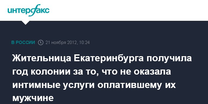 Жительница Екатеринбурга получила год колонии за то, что не оказала интимные услуги оплатившему их мужчине