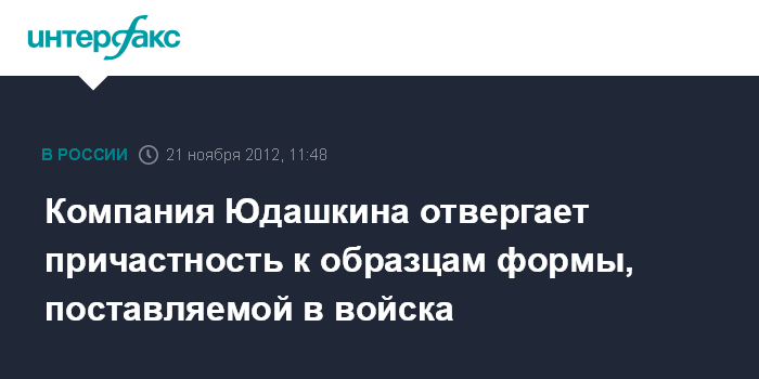Москва. 21 ноября. INTERFAX.RU - Руководство ООО "Валентин Юдашкин" заявляет, что полевая форма, поставляемая в настоящее время в российскую армию, не имеет ничего общего с образцами, разработанными компанией и утвержденными Минобороны и ВГК.