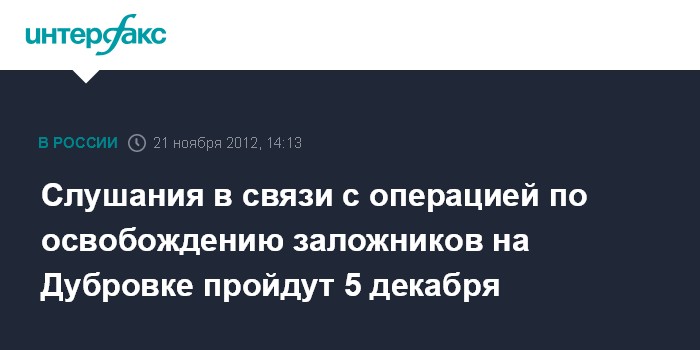Слушания в связи с операцией по освобождению заложников на Дубровке пройдут 5 декабря