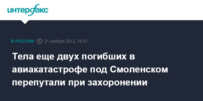 Таким образом, в общей сложности как минимум шесть тел из 96 погибших в авиакатастрофе под Смоленском были захоронены в чужих могилах.