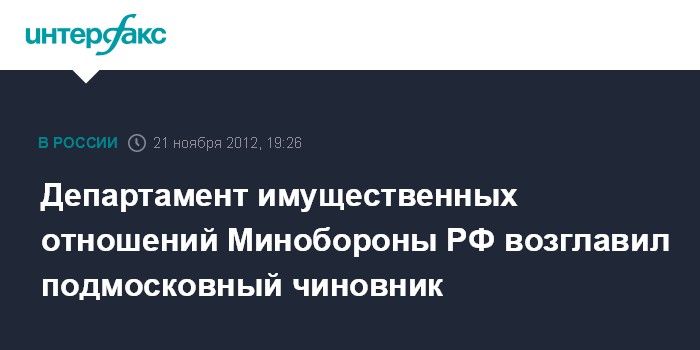 Департамент имущественных отношений Минобороны РФ возглавил подмосковный чиновник