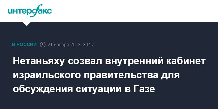 Иерусалим. 21 ноября. INTERFAX.RU - Премьер-министр Израиля Биньямин Нетаньяху в среду вечером созвал министров, входящих во внутренний кабинет безопасности правительства, чтобы обсудить ситуацию в Секторе Газа, сообщает местной армейское радио.