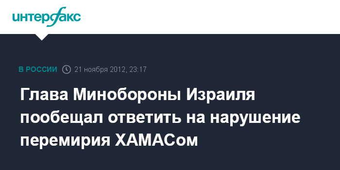 "Если перемирие не будет соблюдаться, наш ответ будет еще более сильным (чем в ходе проводимой до перемирия операции "Столп облачный" - ИФ)", - сказал он на пресс-конференции. Барак подчеркнул, что за последнюю неделю израильская армия, нанося удары по сектору Газа, выполнила все поставленные задачи.