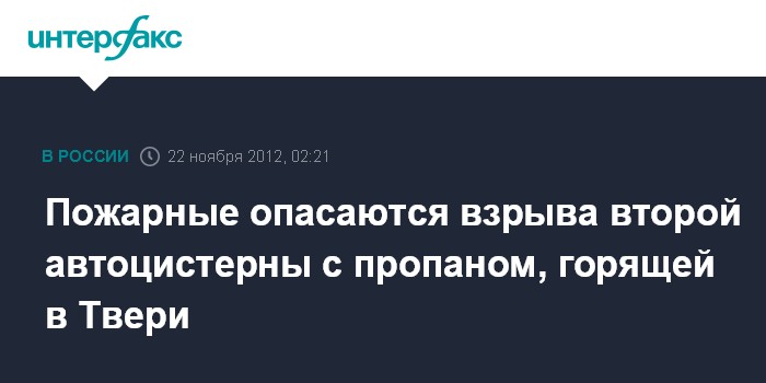 Пожарные опасаются взрыва второй автоцистерны с пропаном, горящей в Твери