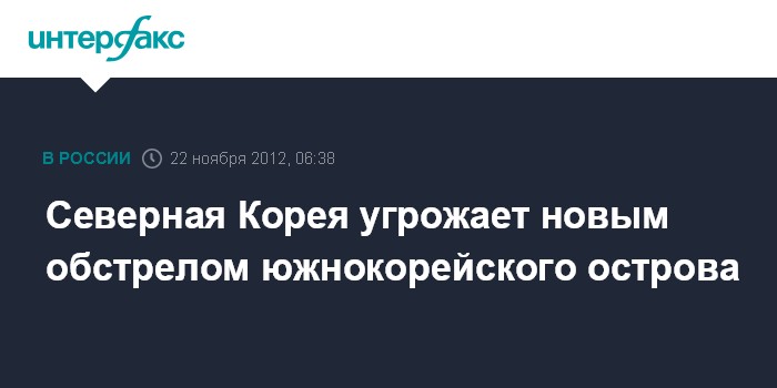 Пхеньян. 22 ноября. ИНТЕРФАКС - Представитель военного командования Северной Кореи выступил в четверг с угрозами подвергнуть новому обстрелу южнокорейский остров Енпхендо в Желтом море в связи с намеченными Южной Кореей мероприятиями в память о погибших на острове в результате северокорейского артналета на остров в 2010 году.