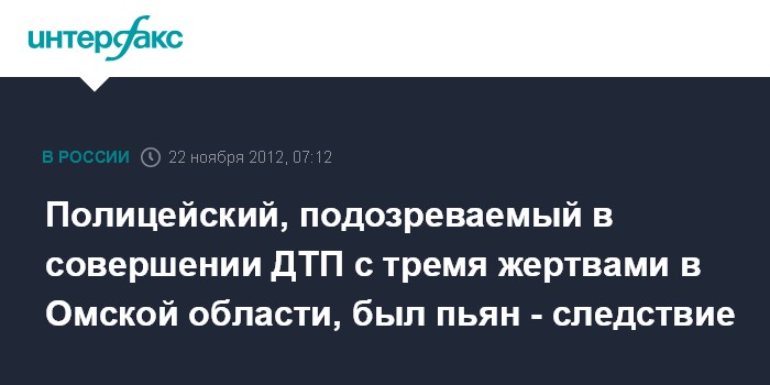 Полицейский, подозреваемый в совершении ДТП с тремя жертвами в Омской области, был пьян - следствие