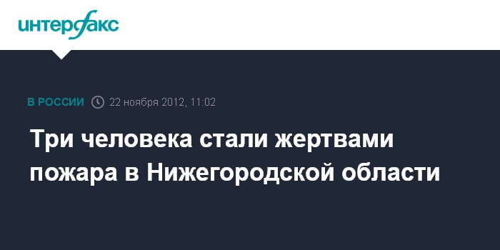 Нижний Новгород. 22 ноября. INTERFAX.RU - Пожар в частном жилом доме в селе Дивеево Нижегородской области унес жизни трех человек, еще один госпитализирован, сообщает региональное управление МЧС России.